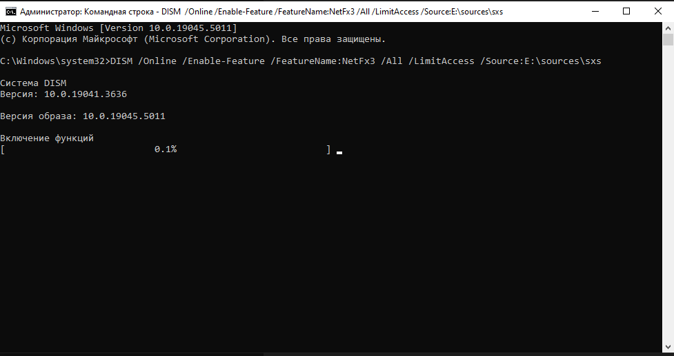 DISM /Online /Enable-Feature /FeatureName:NetFx3 /All /LimitAccess /Source:Е:\sources\sxs