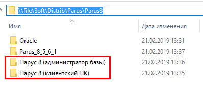 Выбрать папку соответствующую для установки клиентского ПК, либо ПК администратора базы Паруса, и скопировать соответствующую папку на Рабочий стол локального ПК ( после установки ТРЕБУЕТСЯ удалить папку)