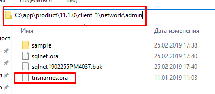 После установки дистрибутива требуется перейти в папку установки по адресу : C:\app\product\11.1.0\client_1\network\admin и скопировать в нее файл из папки с дистрибутивом tnsnames.ora