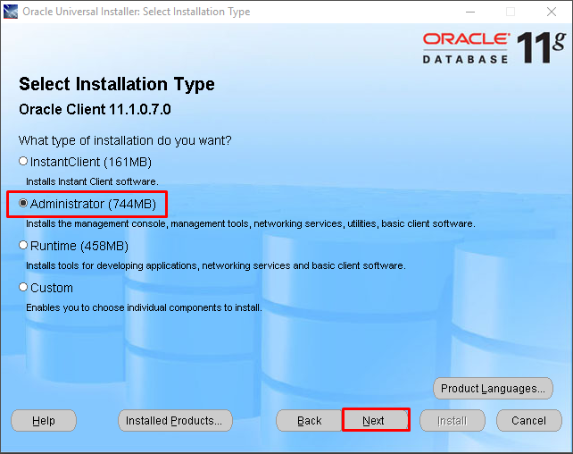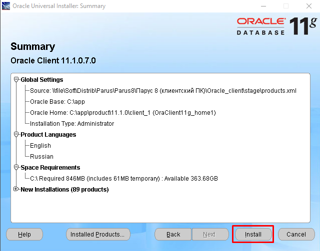 В каждой из папок лежит Oracle_сlient, установка происходит идентично в обоих случаях. Перейти в каталог « Oracle_сlient» и запустить программу установки SETUP.EXE. Появится окно установки (Делаем все как указано на скриншотах далее):