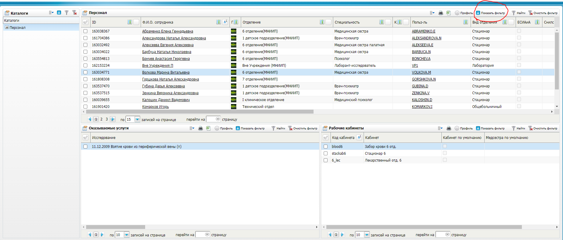 Далее нажимаем на кнопку показать фильтр - ищем нужного нам сотрудника с АНАЛОГИЧНЫМ функционалом, который нужно расшарить на нового сотрудника.