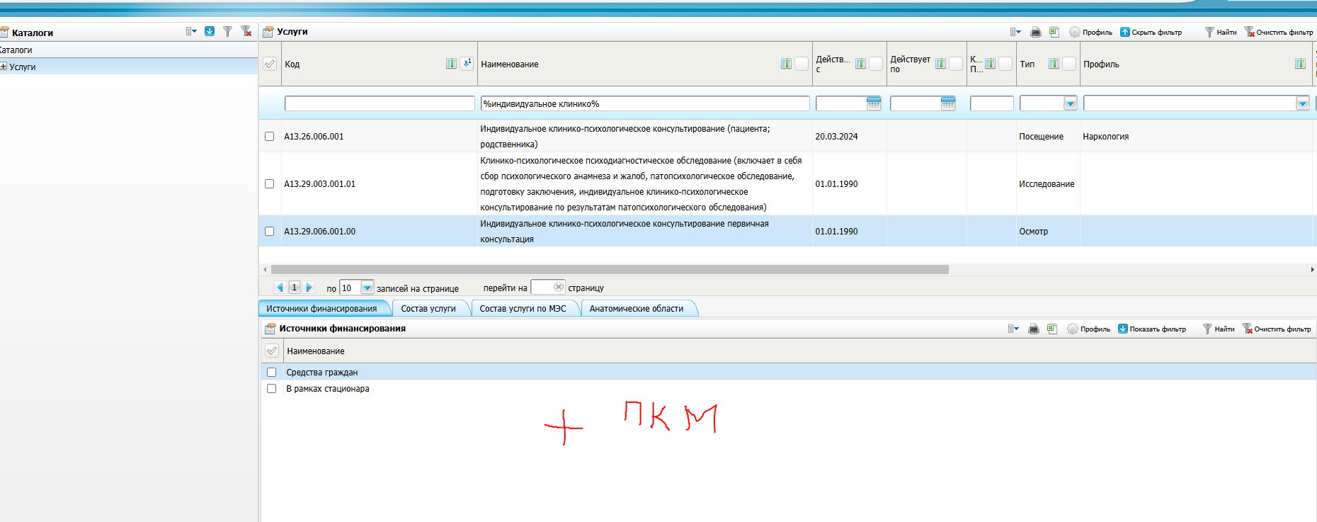 Ищем нужную нам услугу в поиске окна [Услуги]