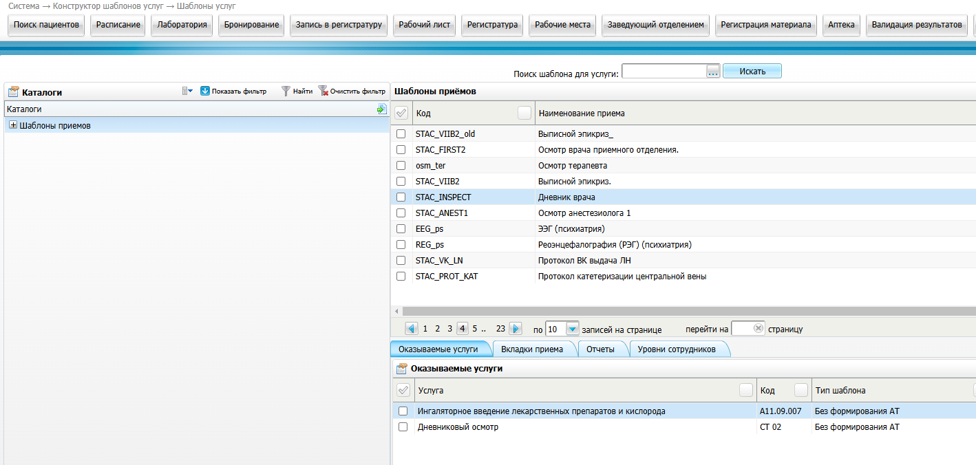 Для того чтобы привязать услугу к шаблону на потребуется перейти по пути : Система → Конструктор шаблонов услуг → Шаблоны услуг .