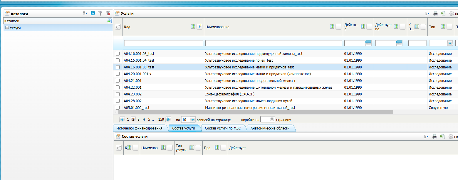 В открывшемся окне мы можем найти нужную нам услугу по КОДУ или Наименованию, предварительно поставив % в поиске.
