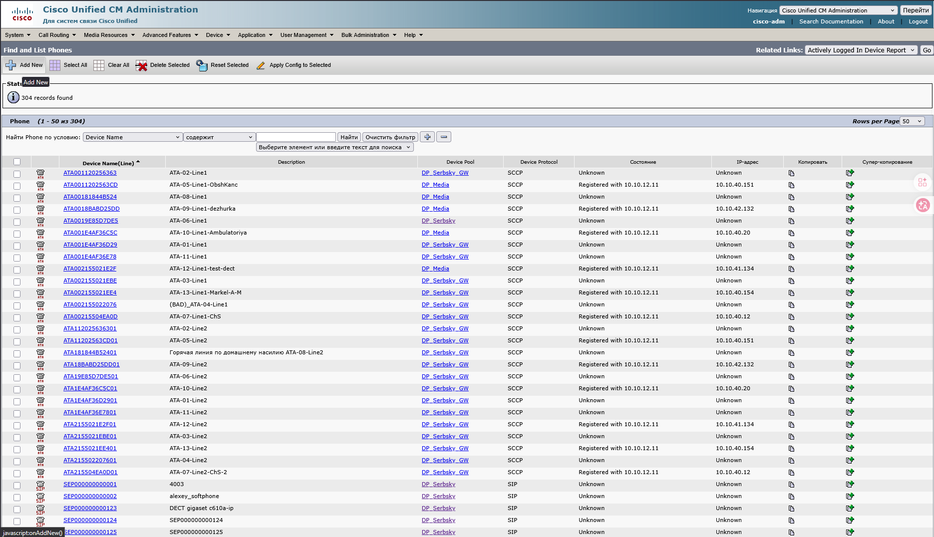 Регистрация телефона Fanvil в Cisco Unified CM Administration